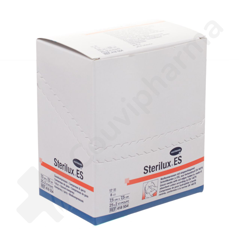 Fiche technique - Sterilux ES 7,5 x 7,5 cm 8 Plis Stérile - 25 x 2 pièces