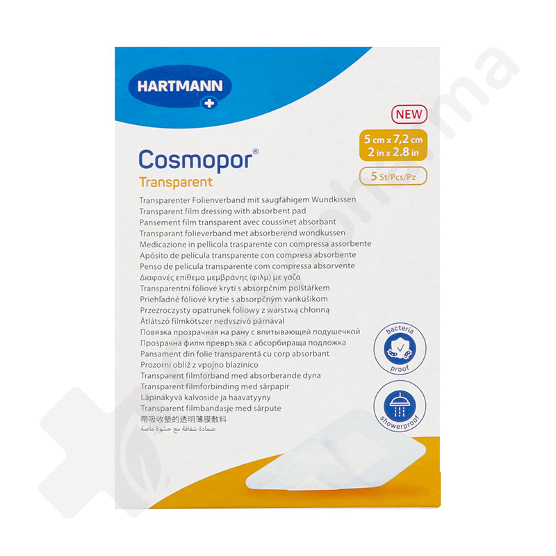 Fiche technique - Cosmopor Transparent 5 x 7,2 cm - 5 pansements transparents