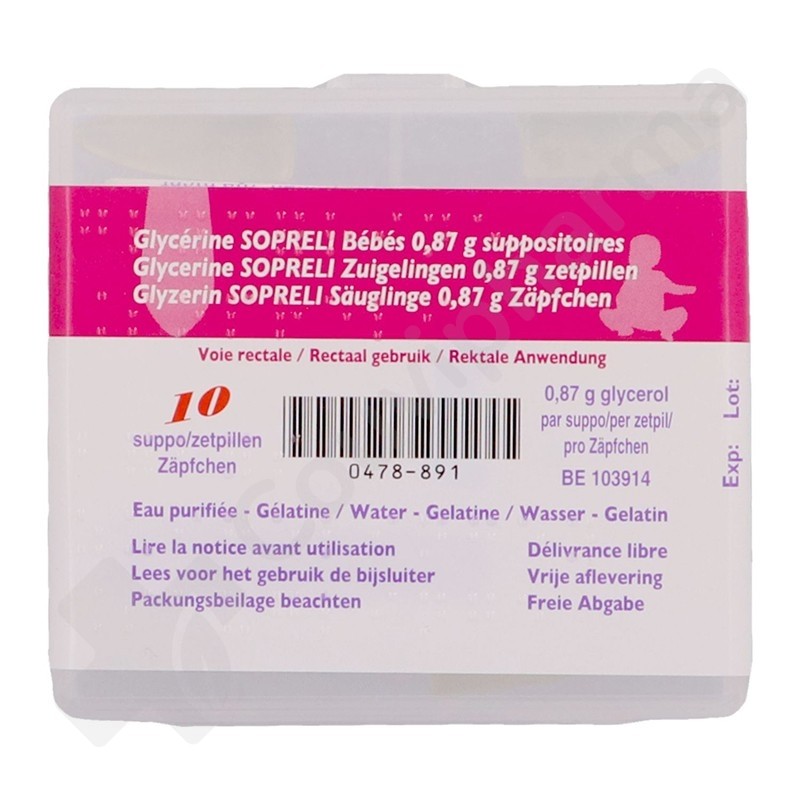 Technische info - Glycerine Sopreli Baby - 10 zetpillen
