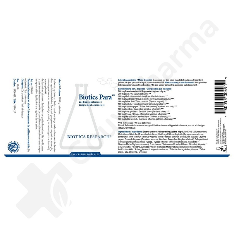 Technische info - Biotics Para - 180 capsules