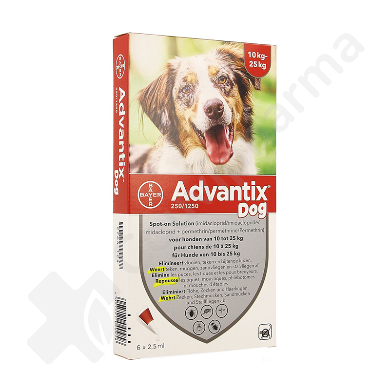 Advantix Dog 250/1250 Honder 10-25 kg - 6 pipetten van 2,5 ml
